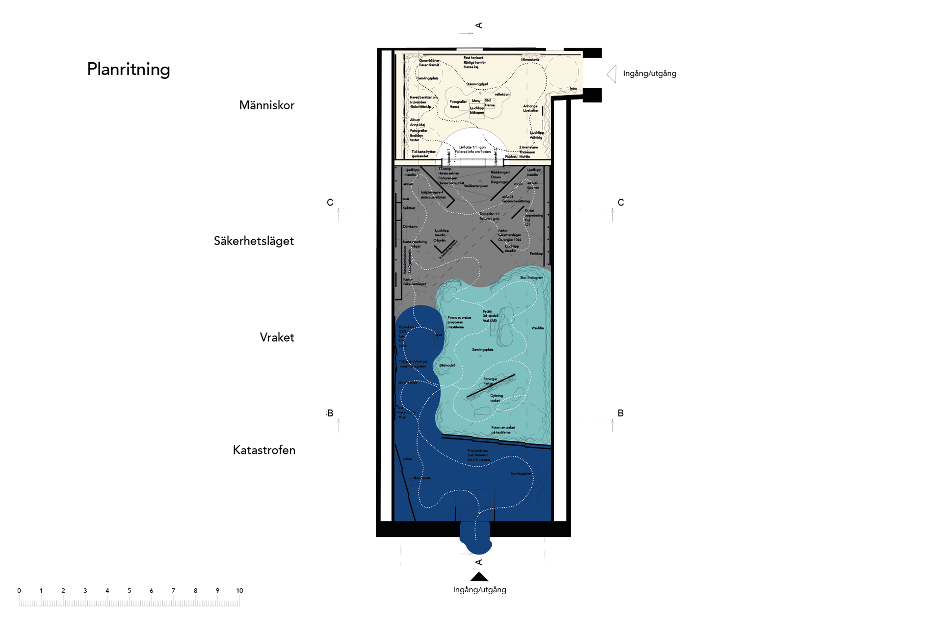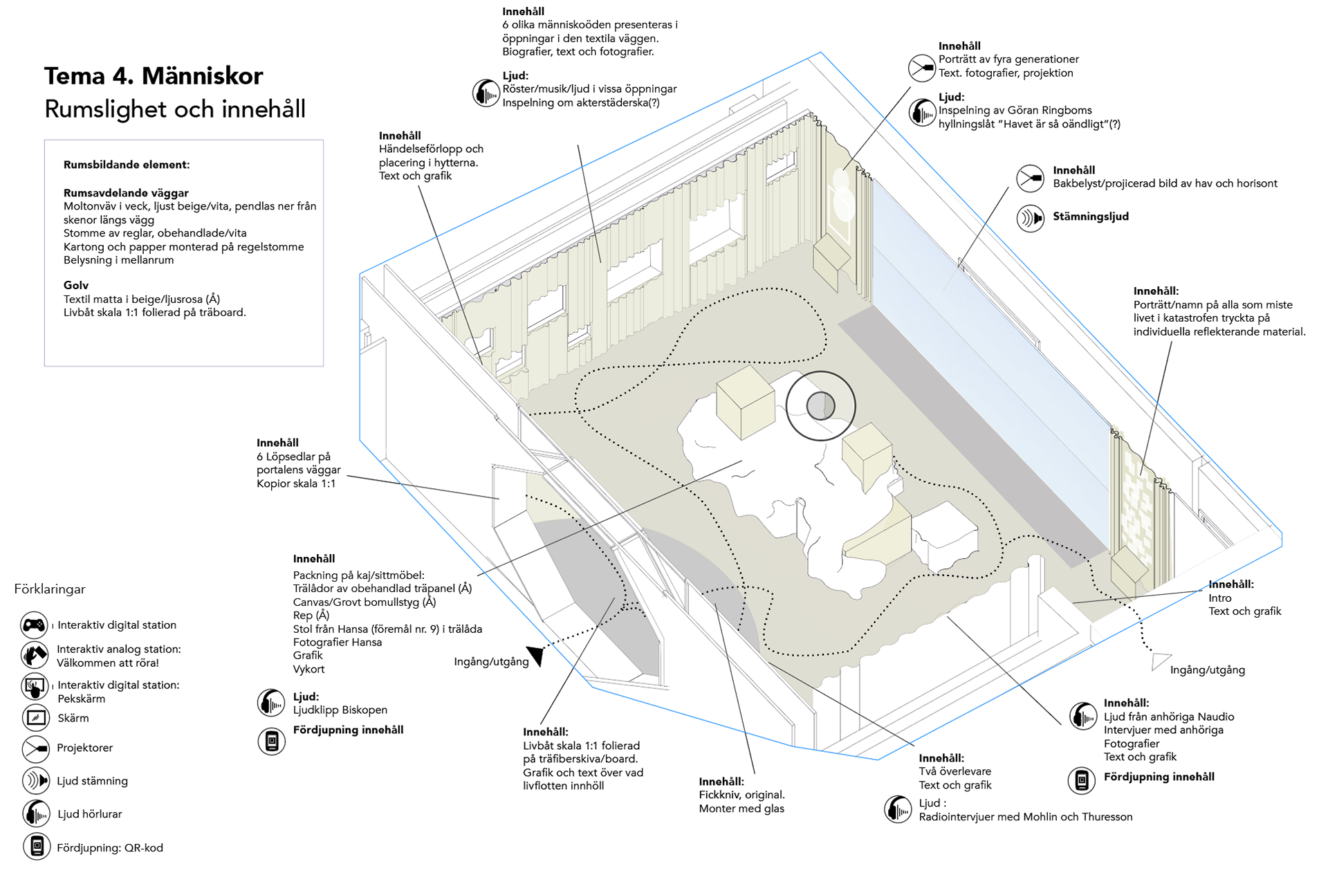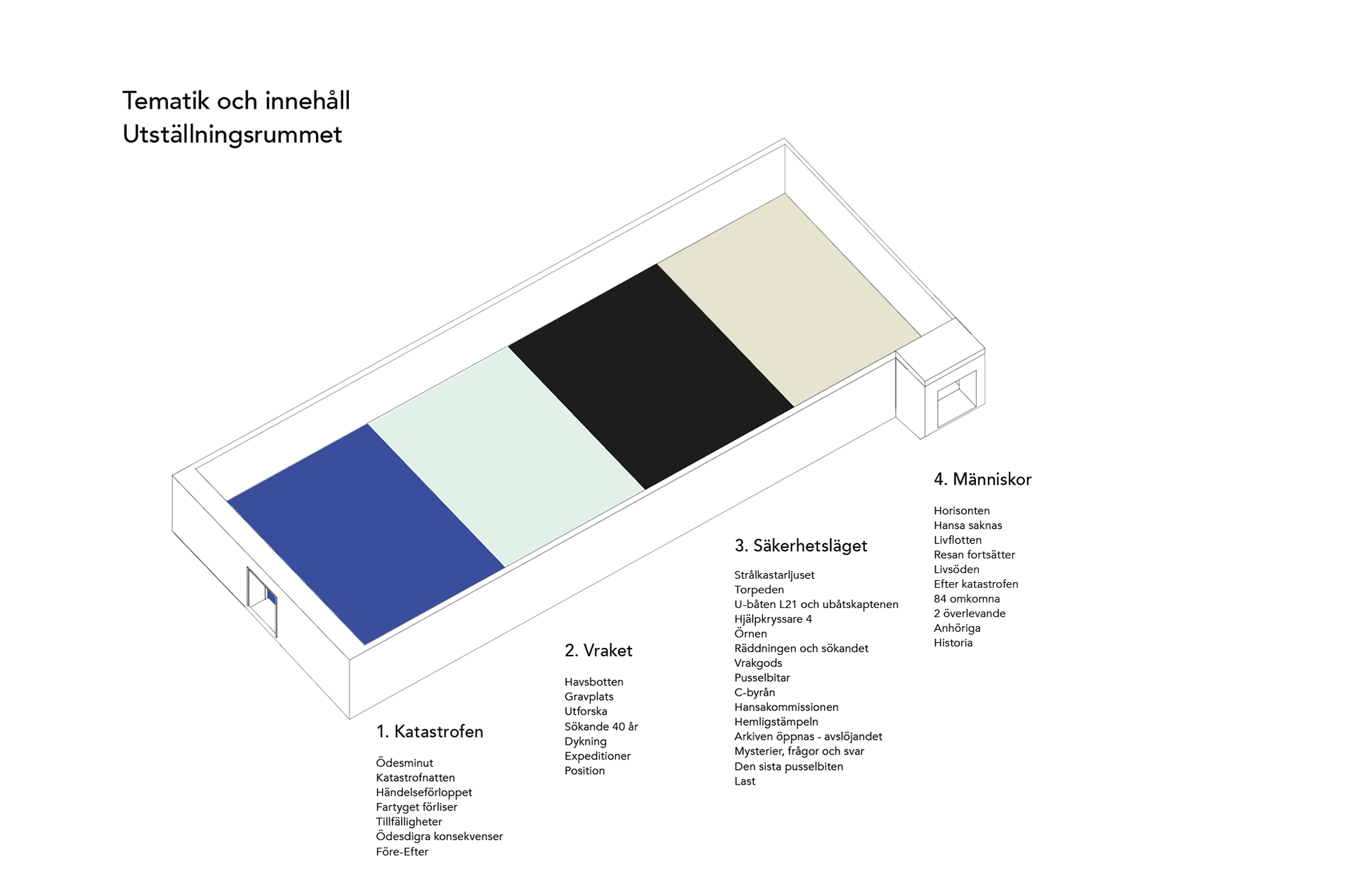 S/S Hansa – En fartygskatastrof. The exhibition design is based on the book of the same title, written by Jakob Ringbom and Lars Almgård Kruthof.
