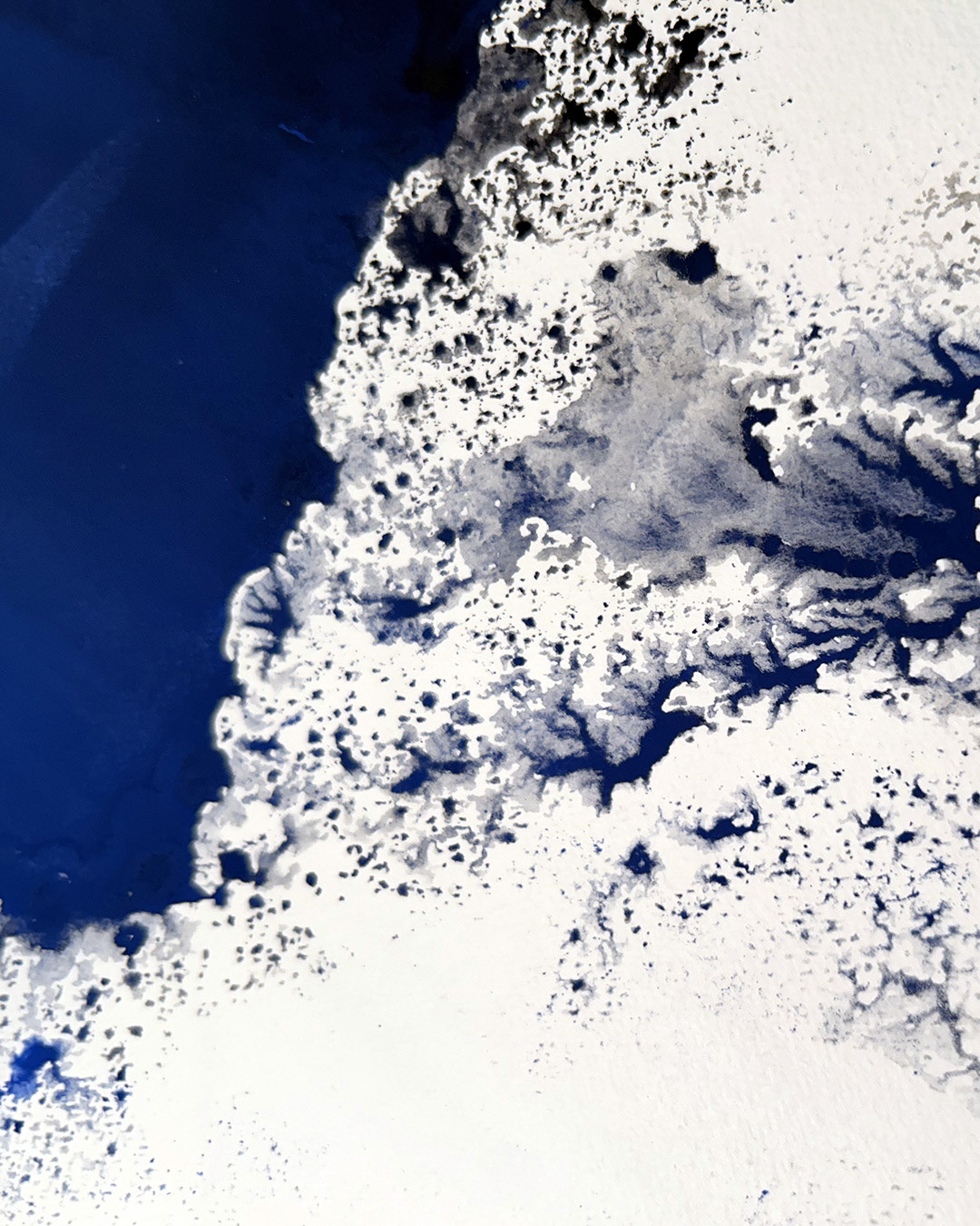 Time rewinds, memories fade, yet the sea remains unchanged. With the sea present in the spatial design, the narrative is carried forward. A range of materials is employed in abstract and suggestive ways to evoke the presence of the sea and water as a metaphor throughout the exhibition.