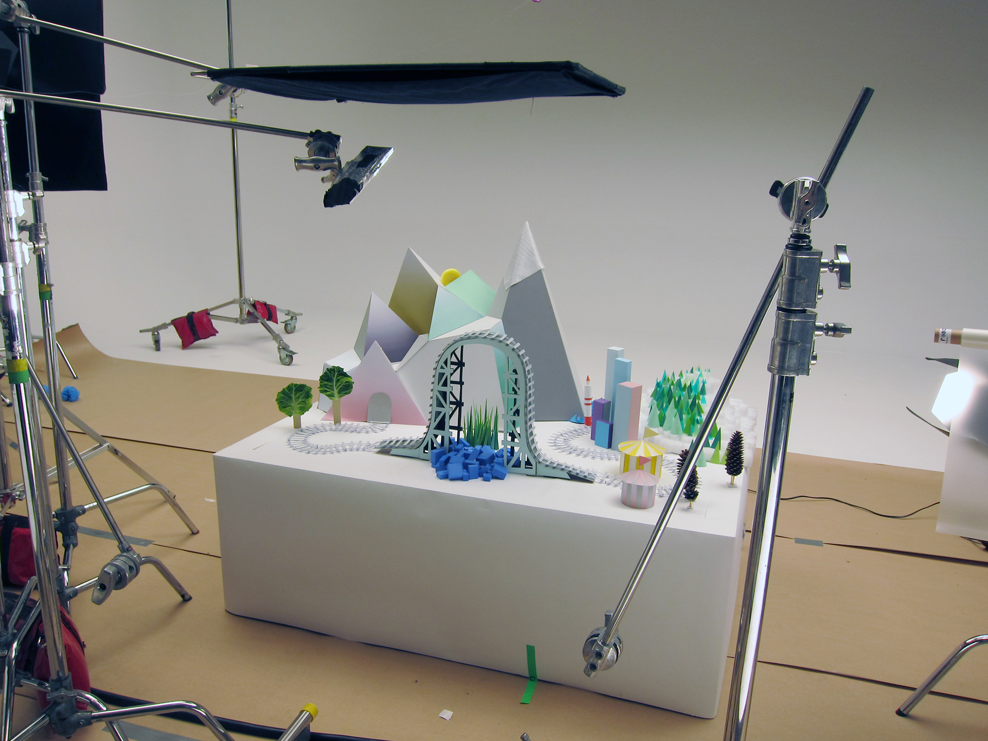 Set design for Fiskars TV Commercial primarily to run on french television featuring their iconic orange handle scissors designed in 1967.
