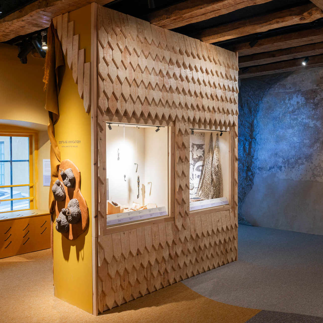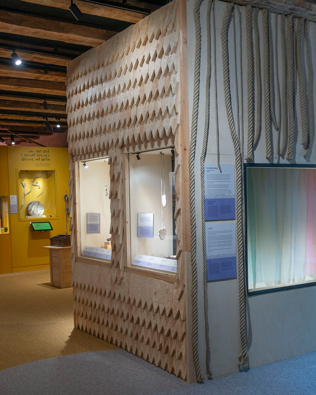 Midgård is a spatial exhibition in which the design emphasises materiality, variation, and physical environments. Most of it is analogue and tactile, supported by digital elements for deeper exploration. The exhibition is organised into several themes featuring images, objects, sound, and interactive components, where materials and aesthetics play a crucial role.