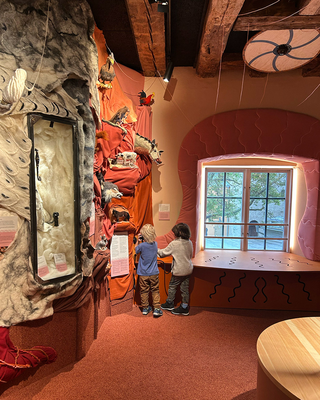 Concept, exhibition design, textile installations developed together with co-architect Jenny Söderström and Knak. Photography: Anna Sundström and Gotlands Museum.